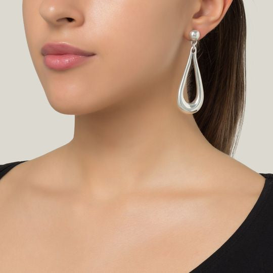 Pendiente chapado plata de ley con cabezal y colgante en plata chapado. Pendiente de zamak chapado en plata de ley con cabezal de media bola y colgante en forma de lágrima . Largo total de 7cm Antialérgico. Cierre de presión. Diseño exclusivo Gloria Mago.Fabricado en España con materias primas de proximidad y de modo sostenible y artesano Se entrega con bolsa/etiqueta/caja o cartoncillo de la marca..