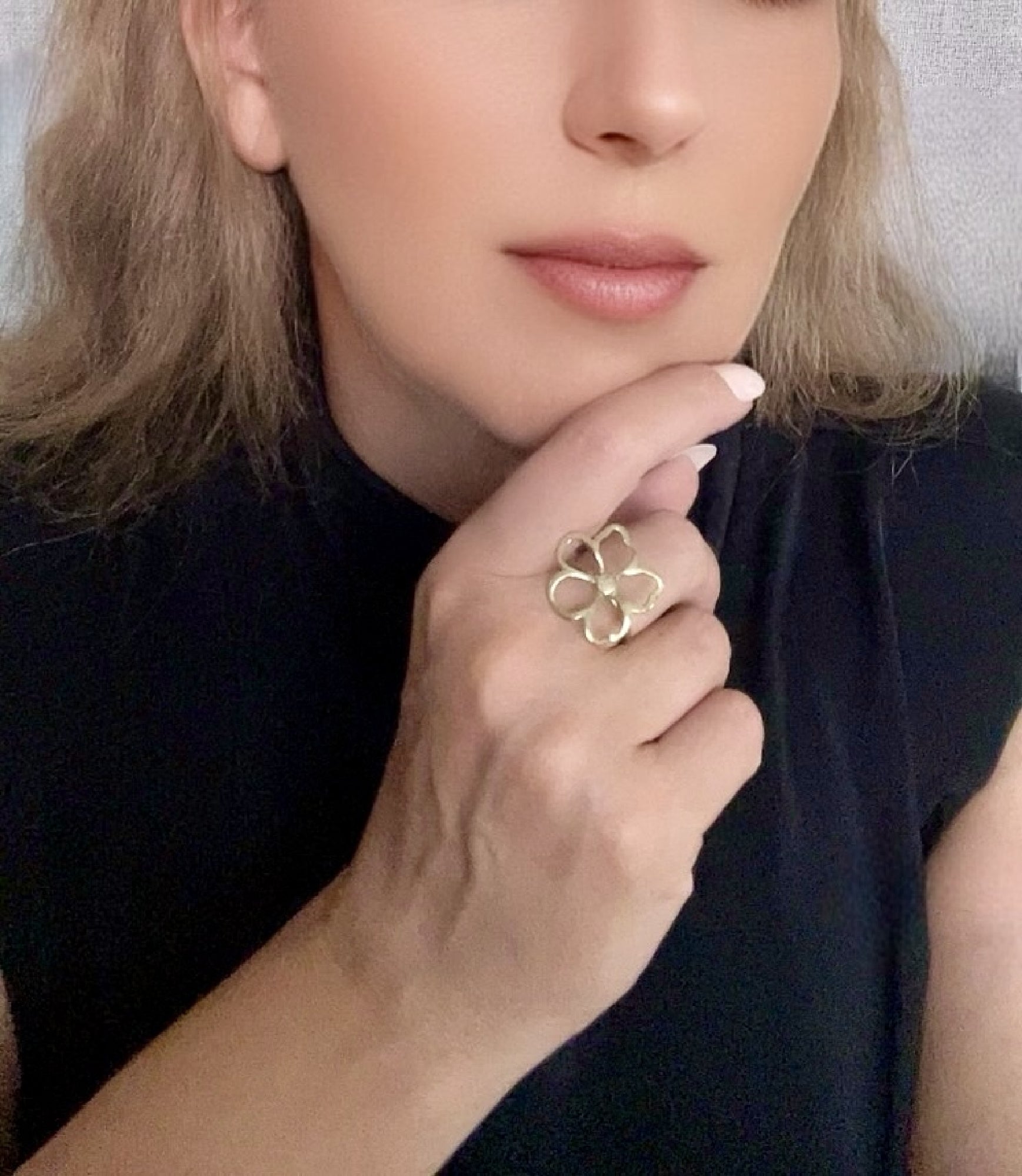 Anillo realizado en fundición de zamak chapado dorado- latón y base de latón en talla 14. detalle de pieza tipo flor estilizada solo en lineas. .Al tratarse de un artículo realizado a mano de modo artesanal, las medidas puedes variar en mm. Antialérgico y libre de materias dañinas como Nikel o Plomo. Diseño exclusivo Gloria Mago..Fabricado en España con materias primas de proximidad y de modo sostenible y artesano Se entrega con bolsa/etiqueta/caja o cartoncillo de la marca. El color puede variar ligeramente debido a las pantallas, la partida de fabricación o los tintes empleados si fuera el caso. Cumple todos los standares de calidad y seguridad de la UE. Se trata de piezas realizadas a mano por lo que cada opieza es única, y sus virtudes y defectos la hacen especial como aquel que la luce.Si se emplean pieles y cueros son ecológicos y provenientes de la industria alimentaria