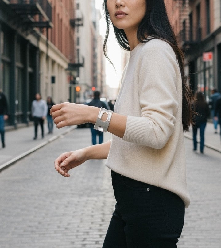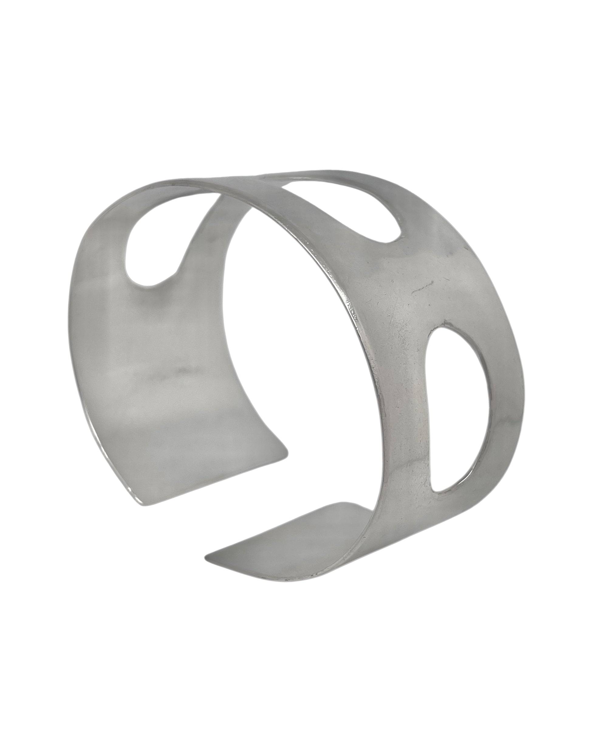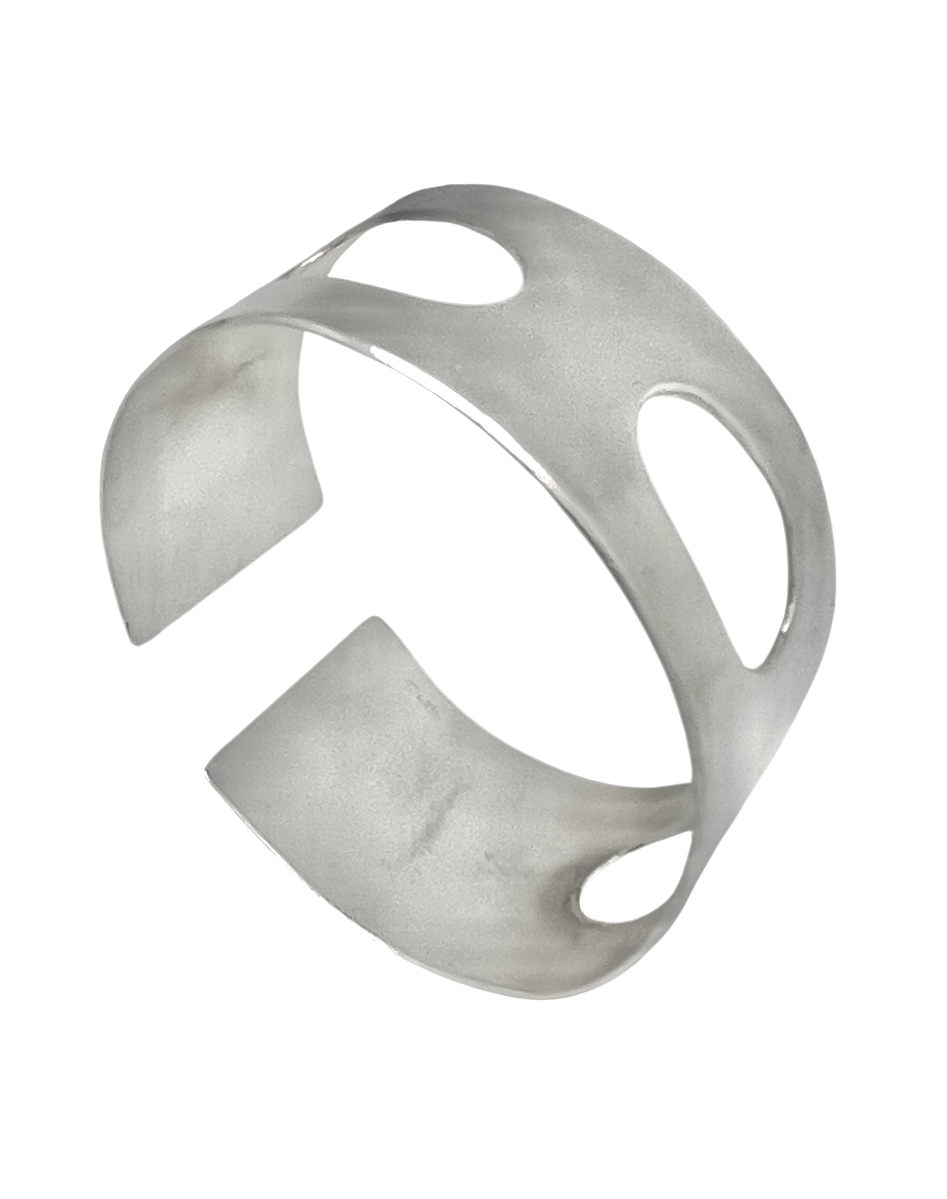 Brazalete en latón ancho chapado plata de ley 10µ con calados ovales centrados. Realizado a mano. Ideal para cualquier ocasión , casual o evento. Ajustable . Antialérgico y libre de materias dañinas como Nikel o Plomo. Diseño exclusivo Gloria Mago.Fabricado en España con materias primas de proximidad y de modo sostenible y artesano Se entrega con bolsa/etiqueta/caja o cartoncillo de la marca. El color puede variar ligeramente debido a las pantallas, la partida de fabricación o los tintes empleados si fuera el caso. Cumple todos los standares de calidad y seguridad de la UE. Se trata de piezas realizadas a mano por lo que cada opieza es única, y sus virtudes y defectos la hacen especial como aquel que la luce.Si se emplean pieles y cueros son ecológicos y provenientes de la industria alimentaria