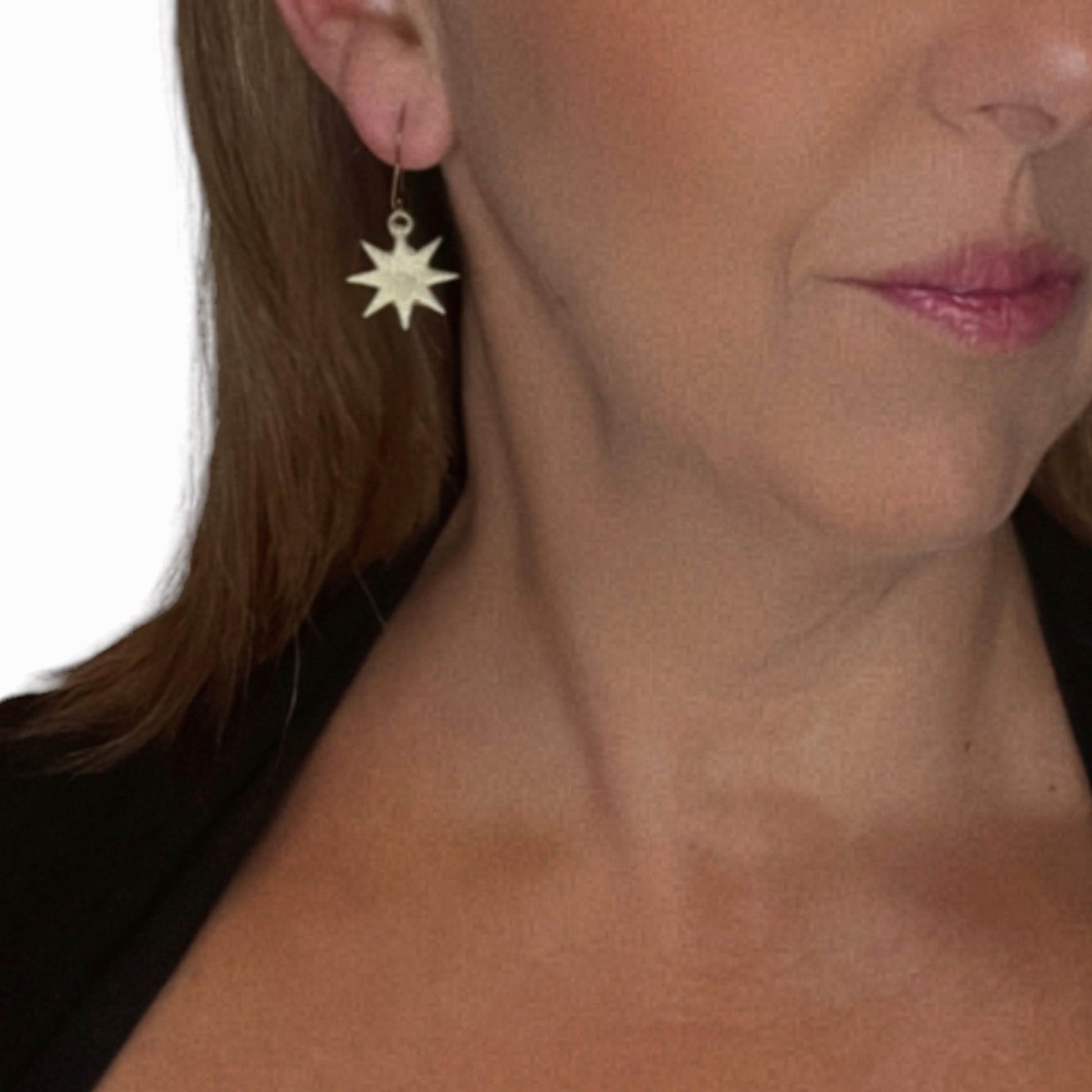Pendiente chapado en dorado en zamak con forma de estrella y gancho de latón. Antialergico. tamaño aprox de 2cm. Diseño exclusivo Gloria Mago..Fabricado en España con materias primas de proximidad y de modo sostenible y artesano Se entrega con bolsa/etiqueta/caja o cartoncillo de la marca. con materias primas de proximidad y de modo sostenible. Antialérgico. Se entrega con bolsa/etiqueta/caja o expositor de la marca.