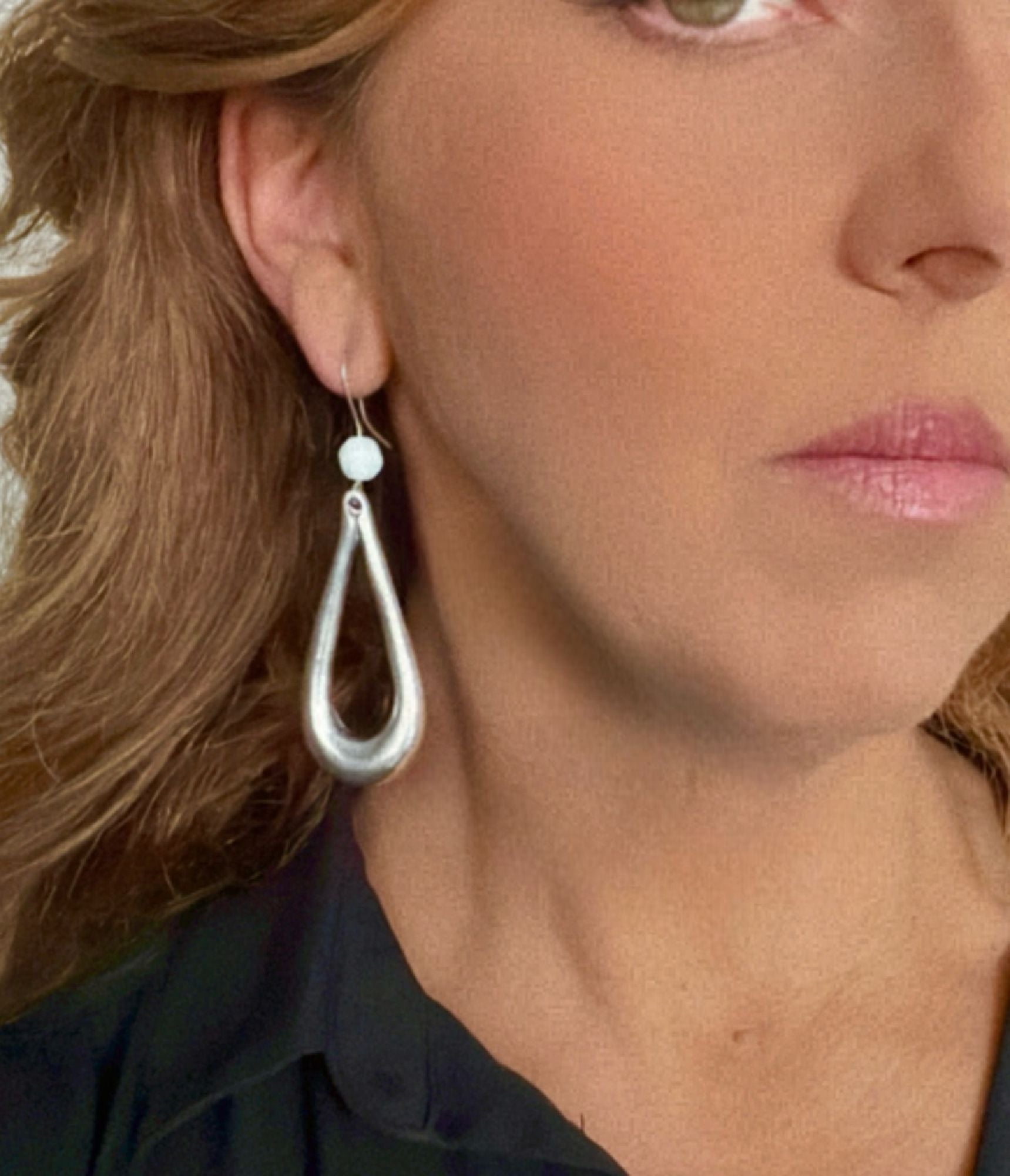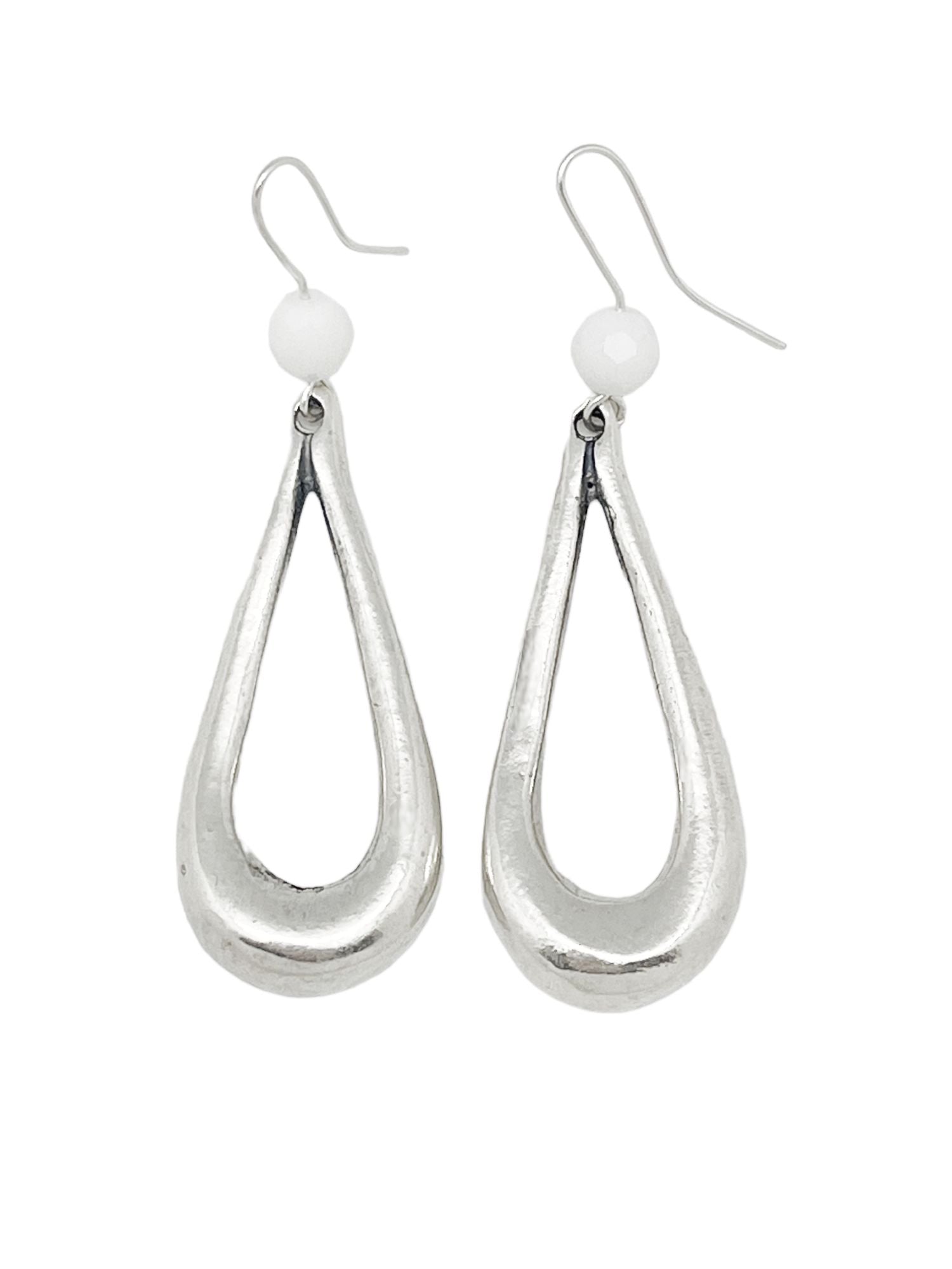 Pendiente de gancho de latón y colgante de metal chapado en plata de ley 7-10 micras con detalle de cristal blanco mate facetado en 16 caras. Antialérgico. Diseño exclusivo Gloria Mago.Fabricado en España con materias primas de proximidad y de modo sostenible y artesano Se entrega con bolsa/etiqueta/caja o cartoncillo de la marca. de modo sostenible y con materias primas de proximidad. Diseño exclusivo Gloria Mago. Se entrega con expositor, etiqueta, bolsa o caja de la marca y cartoncillo de cuidados