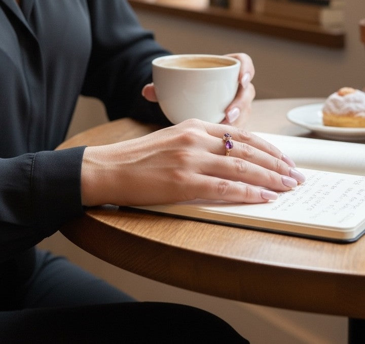 Anillo realizado en fundición de zamak chapado dorado-latón. Talla 13. NO AJUSTABLE . Con detalle de 2 cristales de Sw Components en color amatista y talla oval facetado. Al tratarse de un artículo realizado a mano de modo artesanal, las medidas puedes variar en mm. Antialérgico y libre de materias dañinas como Nikel o Plomo. Diseño exclusivo Gloria Mago.Fabricado en España con materias primas de proximidad y de modo sostenible y artesano Se entrega con bolsa/etiqueta/caja o cartoncillo de la marca. El color puede variar ligeramente debido a las pantallas, la partida de fabricación o los tintes empleados si fuera el caso. Cumple todos los standares de calidad y seguridad de la UE. Se trata de piezas realizadas a mano por lo que cada opieza es única, y sus virtudes y defectos la hacen especial como aquel que la luce.Si se emplean pieles y cueros son ecológicos y provenientes de la industria alimentaria