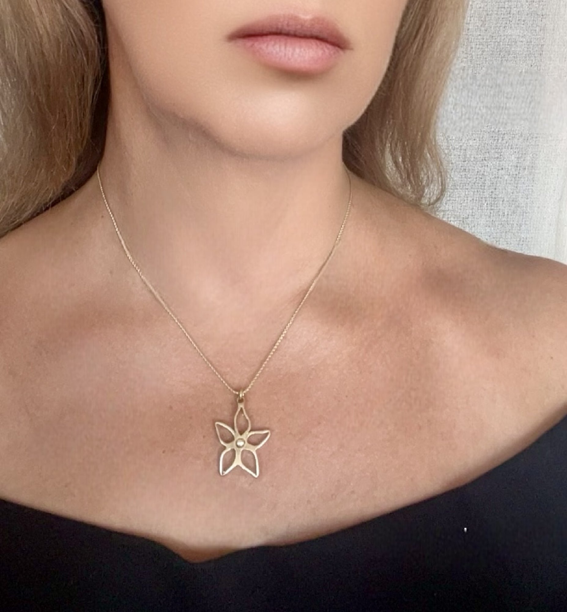 Collar en cadena de latón tipo ratón fina con un largo total de40cm+extensión. Cierre de mosquetón. Detalle central de Flor lineal en petalos irregulares de metal de zamak chapado en dorado (latón). Antialérgico. Diseño exclusivo Gloria Mago.Fabricado en España con materias primas de proximidad y de modo sostenible y artesano Se entrega con expositor/bolsa/etiqueta o caja de la marca y cartoncillo de cuidados. El color puede variar ligeramente debido a las resolución de las pantallas y al uso de tintes ecológicos en su caso. Cumple todos los standares de calidad y seguridad de la UE