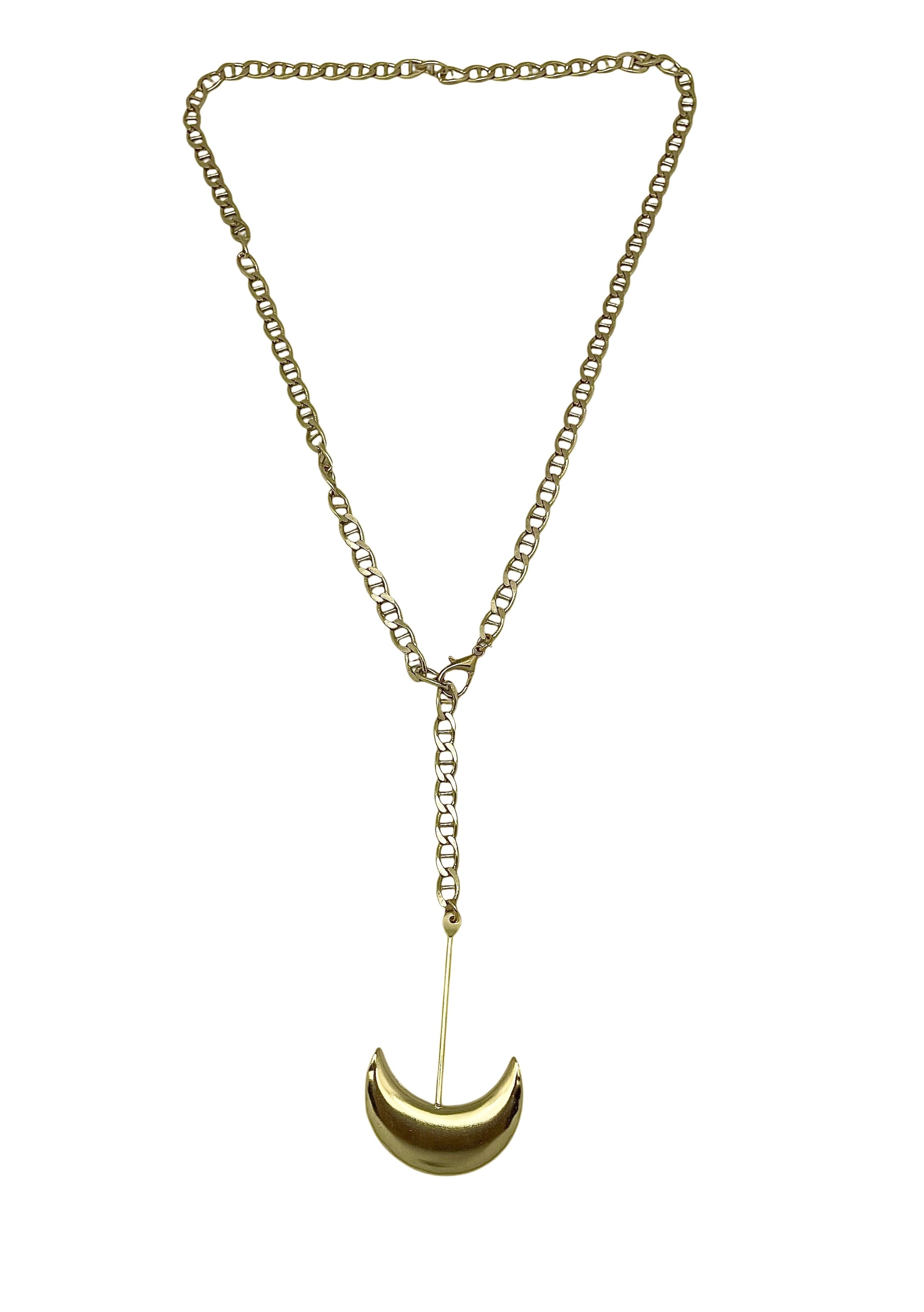 Collar largo de cadena de latón chapada en dorado de eslabones abiertos con un largo de 70cm con cierre de mosquetón delantero para poder posicionar el collar en distintos estilos.Collar largo, corbatero, etc. Colgante de único diseño exclusivo con pieza de metal de zamak de fundición chapado en dorado latón en forma inspirada en las anclas nauticas con lineas minimalistas y delicadas.Collar en tendencia pero atemporal. Un básico en tu joyero con toques exclusivos, elegantes pero casual, oficina, tardeo, en cualquier vento que te surja, resaltará cualquier look elegido.Antialérgico y libre de materias dañinas como Nikel o Plomo. Diseño exclusivo Gloria Mago.Fabricado en España con materias primas de proximidad y de modo sostenible y artesano Se entrega con bolsa/etiqueta/caja o cartoncillo de la marca. El color puede variar ligeramente debido a las pantallas, la partida de fabricación o los tintes empleados si fuera el caso. Cumple todos los standares de calidad y seguridad de la UE. Se trata de piezas realizadas a mano por lo que cada opieza es única, y sus virtudes y defectos la hacen especial como aquel que la luce.Si se emplean pieles y cueros son ecológicos y provenientes de la industria alimentaria