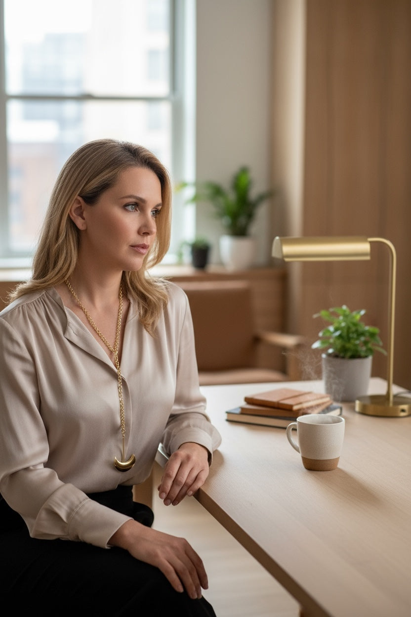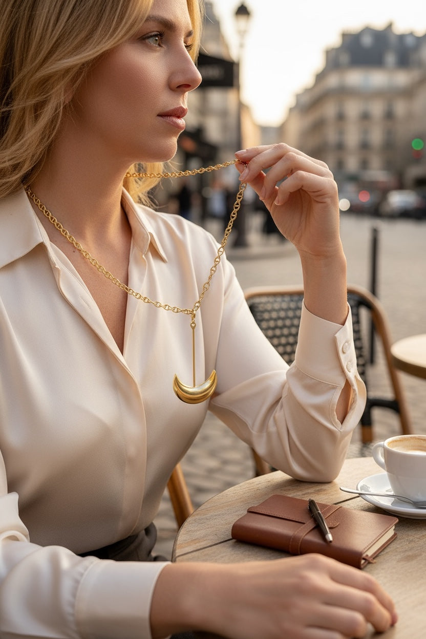 Collar Caleido largo multiposición corbatero en latón chapado dorado