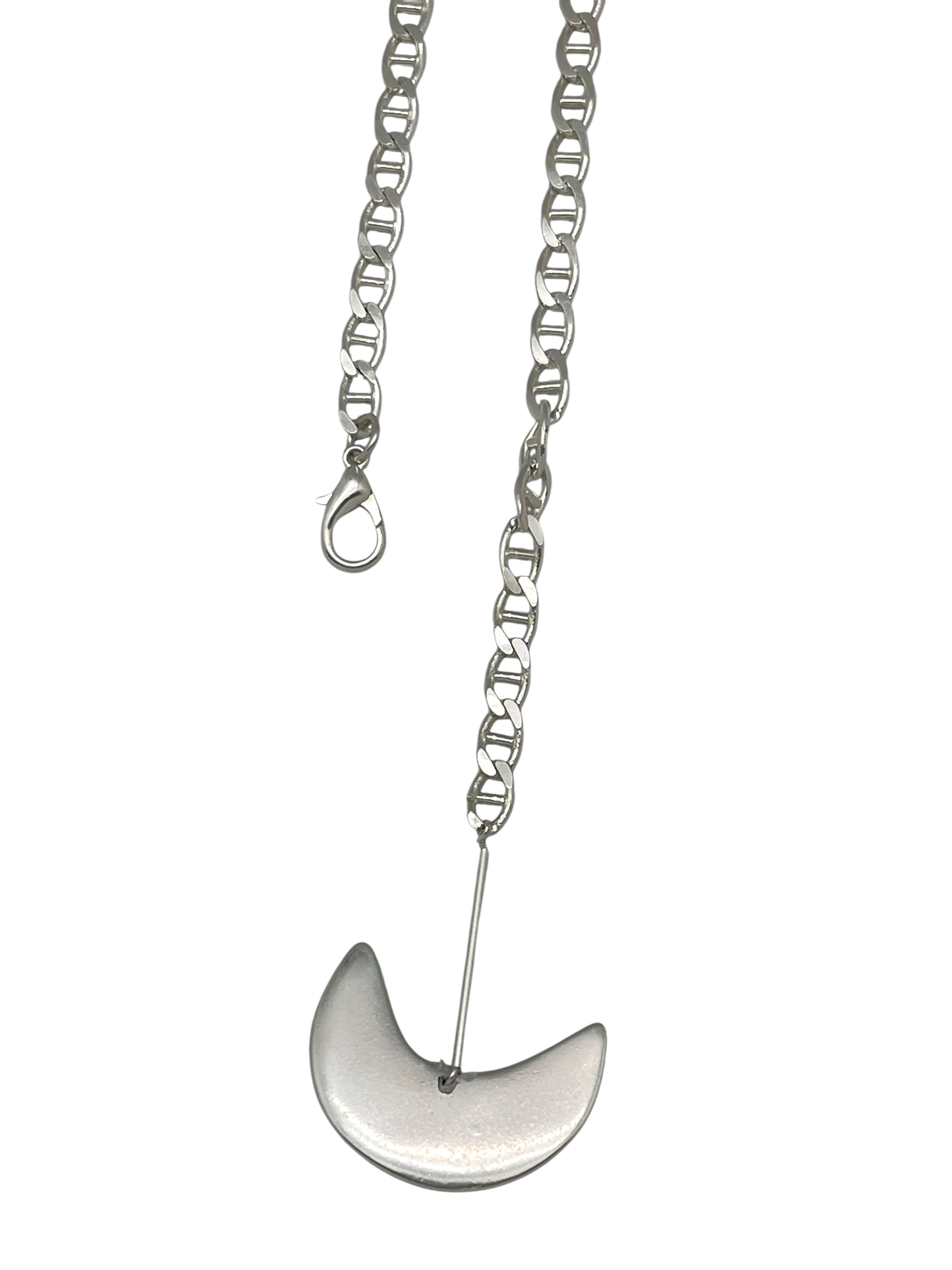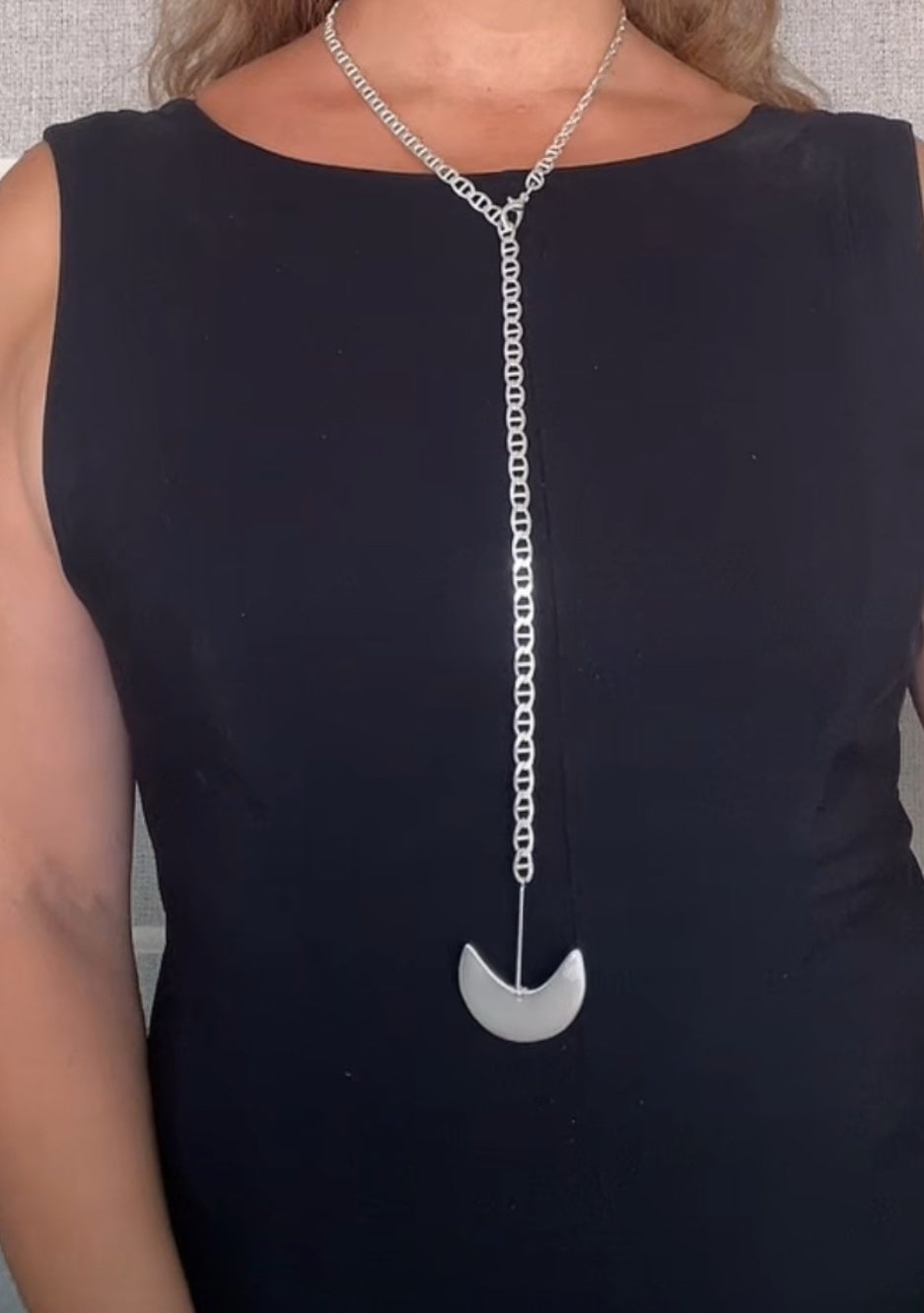 Collar largo de cadena de latón chapada en plata de ley 10µ de eslabones abiertos con un largo de 70cm con cierre de mosquetón delantero para poder posicionar el collar en distintos estilos.Collar largo, corbatero, etc. Colgante de único diseño exclusivo con pieza de metal de zamak de fundición chapado en plata de ley en forma inspirada en las anclas nauticas con lineas minimalistas y delicadas.Collar en tendencia pero atemporal. Un básico en tu joyero con toques exclusivos, elegantes pero casual, oficina, tardeo, en cualquier vento que te surja, resaltará cualquier look elegido.Antialérgico y libre de materias dañinas como Nikel o Plomo. Diseño exclusivo Gloria Mago.Fabricado en España con materias primas de proximidad y de modo sostenible y artesano Se entrega con bolsa/etiqueta/caja o cartoncillo de la marca. El color puede variar ligeramente debido a las pantallas, la partida de fabricación o los tintes empleados si fuera el caso. Cumple todos los standares de calidad y seguridad de la UE. Se trata de piezas realizadas a mano por lo que cada opieza es única, y sus virtudes y defectos la hacen especial como aquel que la luce.Si se emplean pieles y cueros son ecológicos y provenientes de la industria alimentaria