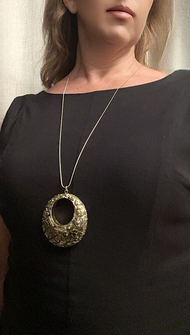 Collar largo Dentro del Laberinto resina dorado y latón chapado dorado