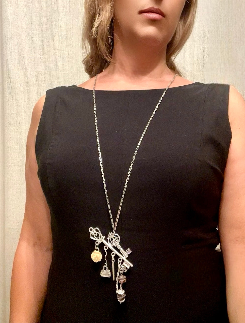 Collar largo Key Club charms pendant en plata chapado 10µ