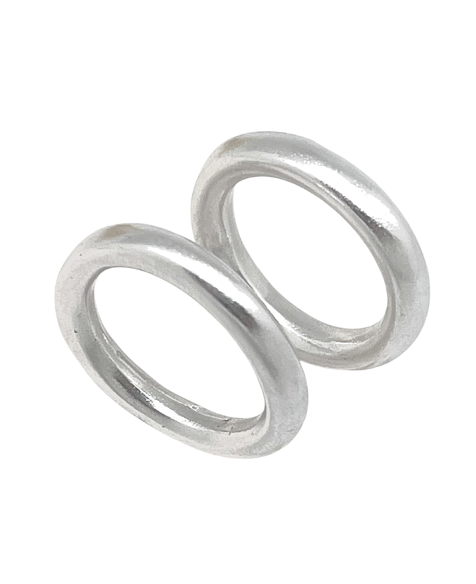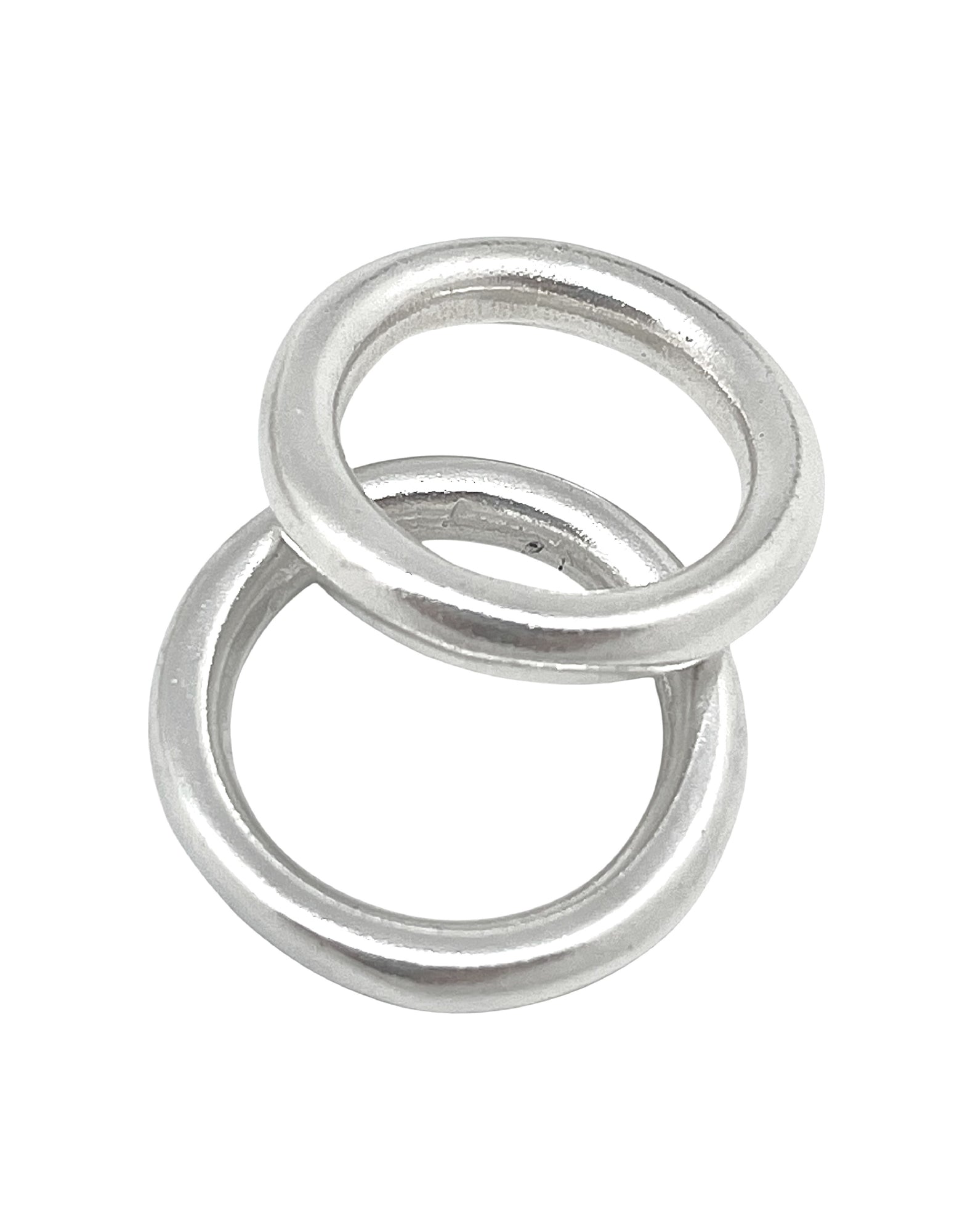 Pareja de anillos tipo alianzas realizados en fundición de zamak chapado en plata de ley 10µ y terminados de modo manual.Se puoeden llevar de modo individual o combinados en el mismo dedo. Talla 14-15,Al tratarse de un artículo realizadoa mano de modo artesanal, las medidas puedes variar en mm. Antialérgico y libre de materias dañinas como Nikel o Plomo. Diseño exclusivo Gloria Mago..Fabricado en España con materias primas de proximidad y de modo sostenible y artesano Se entrega con bolsa/etiqueta/caja o cartoncillo de la marca. El color puede variar ligeramente debido a las pantallas, la partida de fabricación o los tintes empleados si fuera el caso. Cumple todos los standares de calidad y seguridad de la UE. Se trata de piezas realizadas a mano por lo que cada opieza es única, y sus virtudes y defectos la hacen especial como aquel que la luce.Si se emplean pieles y cueros son ecológicos y provenientes de la industria alimentaria