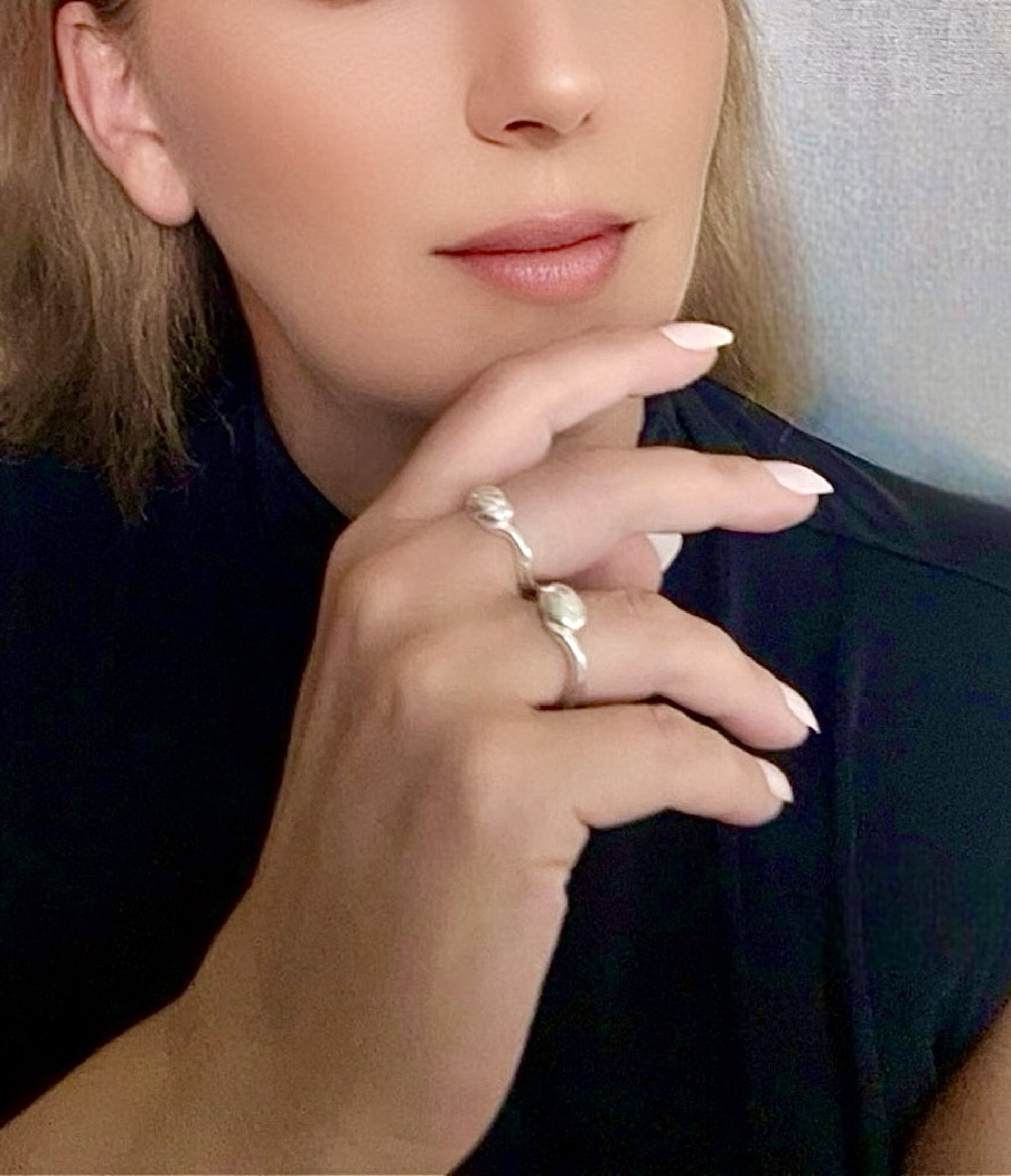 Pareja de anillos realizados en fundición de zamak chapado en plata 10µ, estilo alianzas estrechas de diseño irregular y con detalle de bola irregular en el front. Se pueden llevar de modo individual o combinados en le mismo dedo, terminados de modo manual.Talla 14-15. Al tratarse de un artículo realizadoa mano de modo artesanal, las medidas puedes variar en mm. Antialérgico y libre de materias dañinas como Nikel o Plomo. Diseño exclusivo Gloria Mago..Fabricado en España con materias primas de proximidad y de modo sostenible y artesano Se entrega con bolsa/etiqueta/caja o cartoncillo de la marca. El color puede variar ligeramente debido a las pantallas, la partida de fabricación o los tintes empleados si fuera el caso. Cumple todos los standares de calidad y seguridad de la UE. Se trata de piezas realizadas a mano por lo que cada opieza es única, y sus virtudes y defectos la hacen especial como aquel que la luce.Si se emplean pieles y cueros son ecológicos y provenientes de la industria alimentaria