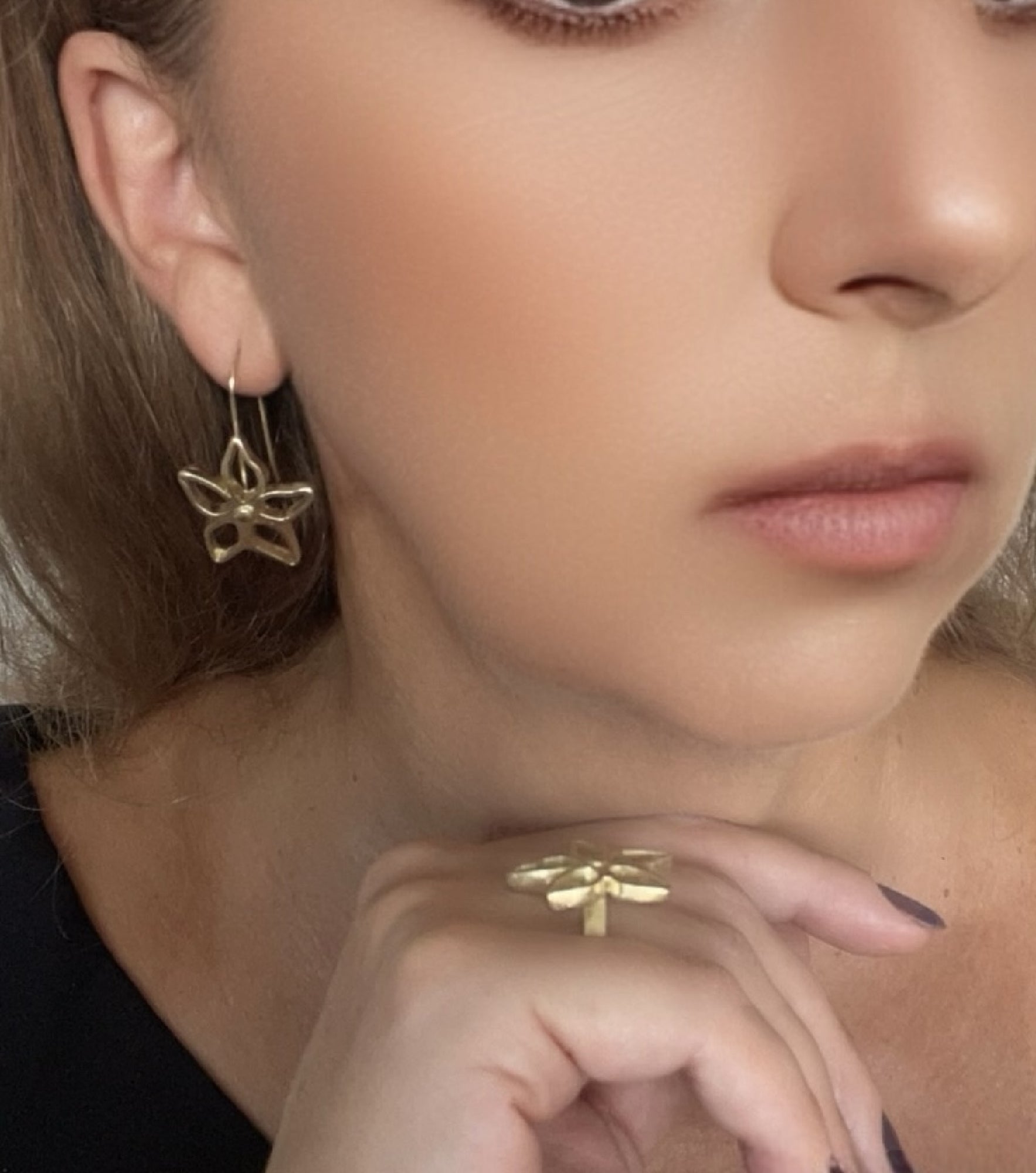 Pendientes de gancho de latón chapado en dorado (latón) con detalle de pieza en forma de flor lineal de pétalos irregulares. Largo total de aprox 4cm. Realizado en metales nobles. Antialérgico y libre de materias dañinas como Nikel o Plomo. Diseño exclusivo Gloria Mago..Fabricado en España con materias primas de proximidad y de modo sostenible y artesano Se entrega con bolsa/etiqueta/caja o cartoncillo de la marca. El color puede variar ligeramente debido a las pantallas, la partida de fabricación o los tintes empleados si fuera el caso. Cumple todos los standares de calidad y seguridad de la UE