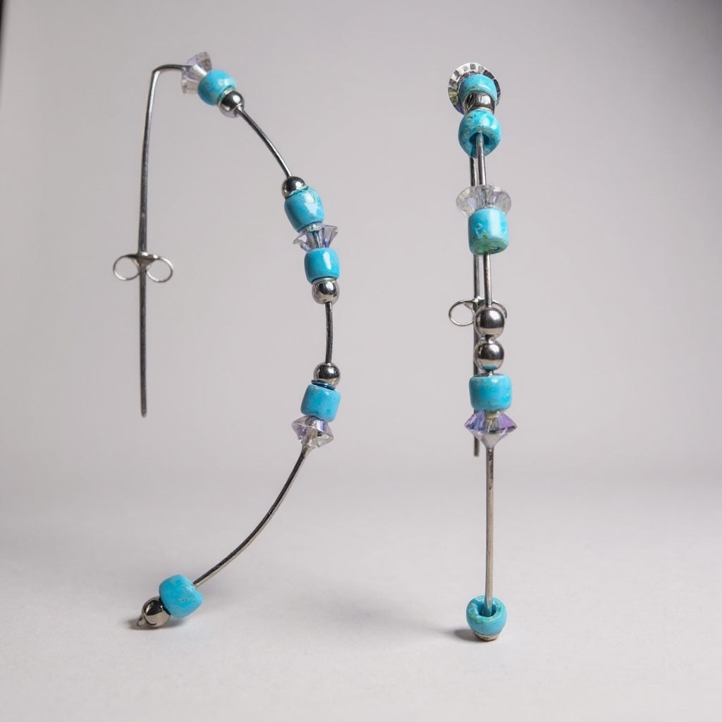 Pendiente en hilo de plata 925 100% con detalles de cristales de Sw en color cristal AB y cristales en azul , estilo aro con forma diseño. Largo 7cm. Diseño semicirculo con cristales. Altialérgico. Diseño exclusivo Gloria Mago para Plata Única. Cada pieza está realizada de modo aretsanal, por lo que es única. Pueden existir pequeñas diferenciasrespecto de la imagen por ese caracter artesanal que caracteriza a la pieza. Los colores pueden variar dependiendo de las resoluciones de las pantallas y de las bolas multicolor empleadas. Se entrega con expositor, bolsa o caja de la marca y cartoncillo de cuidados. Realizado de modo sostenible y con materias primas de proximidad.