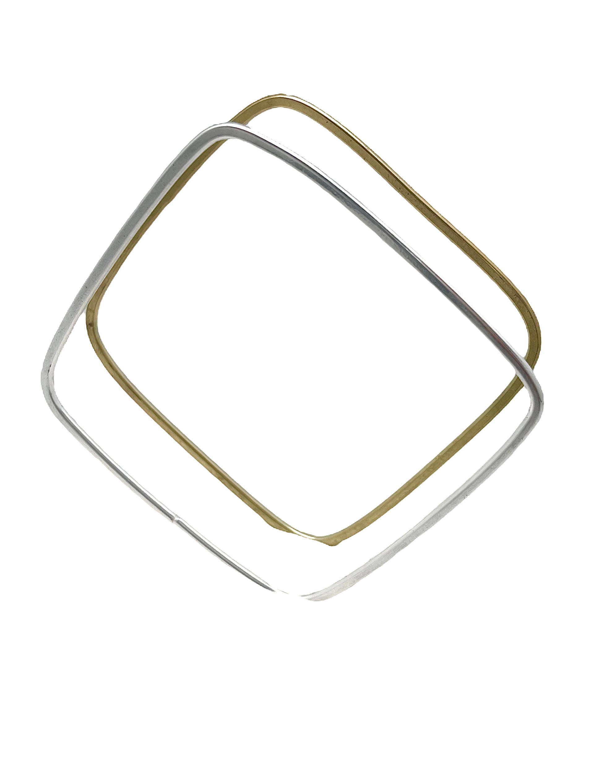 Pulseras tipo Aro Cuadradas pack oro-plata. Latón chapado