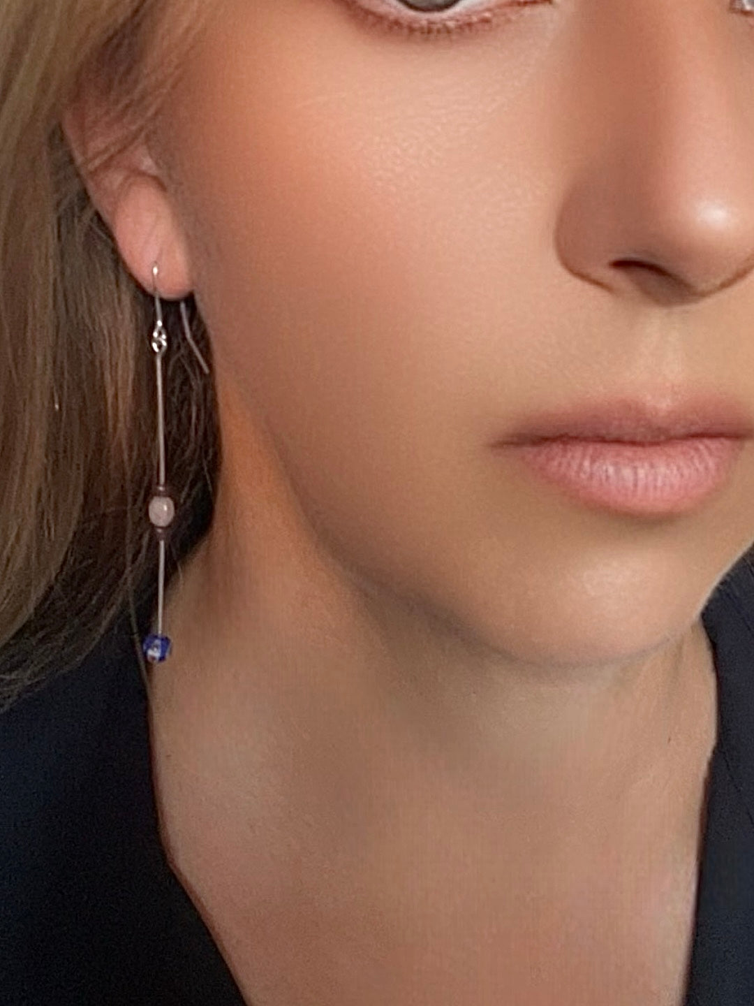 Pendiente en hilo de plata 925 100% con detalles de cristales entonos amatistas y cierre tipo gancho. Largo total de 8,2cm. Peso aprox 3g. Diseño en una sola tira tipo "palito". Altialérgico. Diseño exclusivo Gloria Mago para Plata Única. Cada pieza está realizada de modo aretsanal, por lo que es única. Pueden existir pequeñas diferenciasrespecto de la imagen por ese caracter artesanal que caracteriza a la pieza. Los colores pueden variar dependiendo de las resoluciones de las pantallas y de las bolas multicolor empleadas. Se entrega con expositor, bolsa o caja de la marca y cartoncillo de cuidados. Realizado de modo sostenible y con materias primas de proximidad.